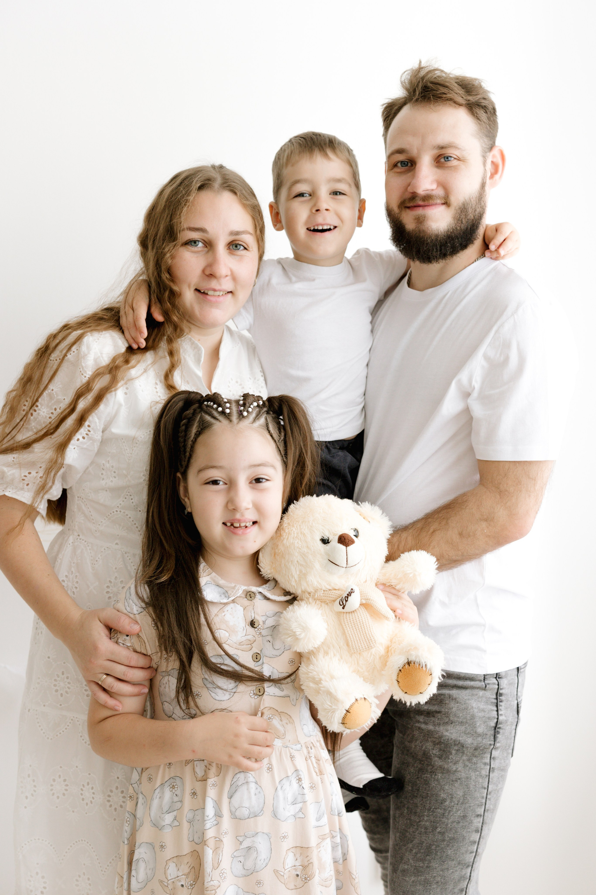 В семейной фотосессии может участвовать вся семья в том числе бабушки, дедушки и пушистые члены семьи